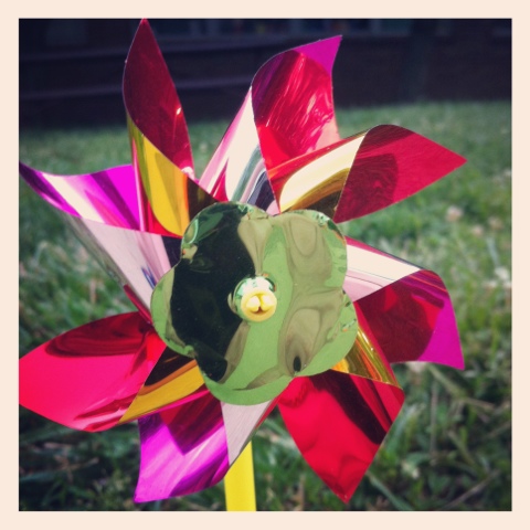 My first job today was to plant lots of these windmills all around the paths at school for field day. I snapped this one before they got a good washing from the rain and storms which were coming.