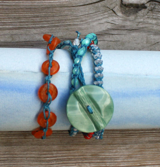 Macrame, 1970’s. Not in my house! I love to mix up some fabulous beads and then macrame them into wrap wrap wrap friendship bracelets. They are light to wear and can be worn alone or with lots of bracelet friends!
