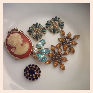 I visited the local Church shop called ‘The Mustard Seed’ yesterday on the way to get the weekend papers. Treasure haul was some single and paired clip earrings and a pretty cameo