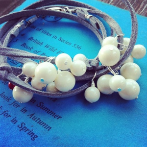 I made an Ivory and single Red Pearl bracelet and photo’ed it on a vintage Ladybird book. ‘The Ladybird book of Garden Birds’.