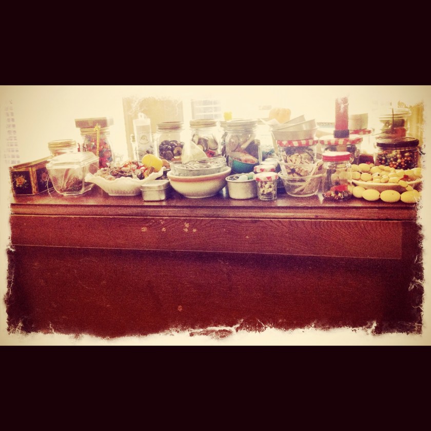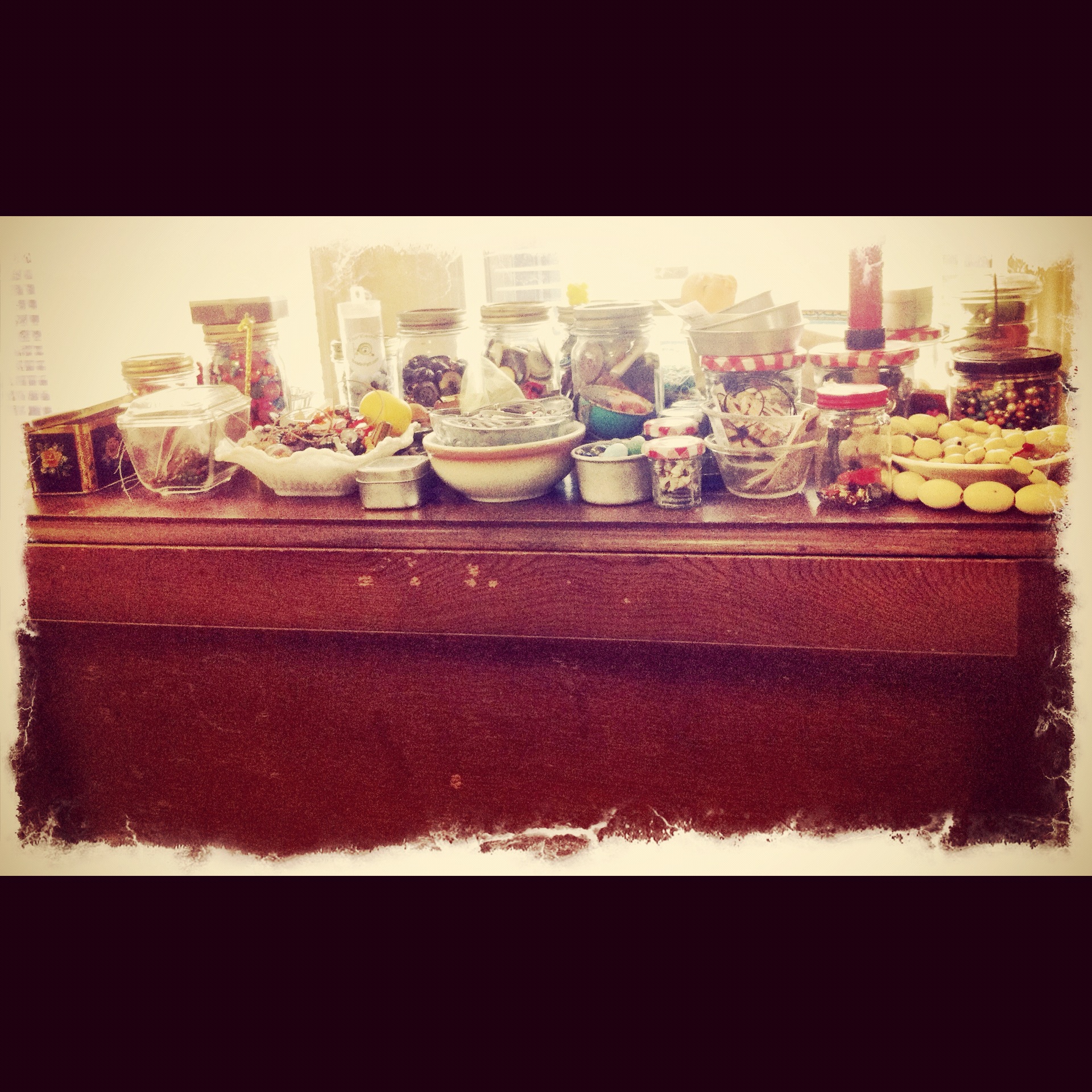 Day 13. ‘Table’ This is my grandma’s table where we used to eat every meal when we visited. Now I use it to store my creative bits and bobs. Mainly jars of bead mixes and various paraphenelia!