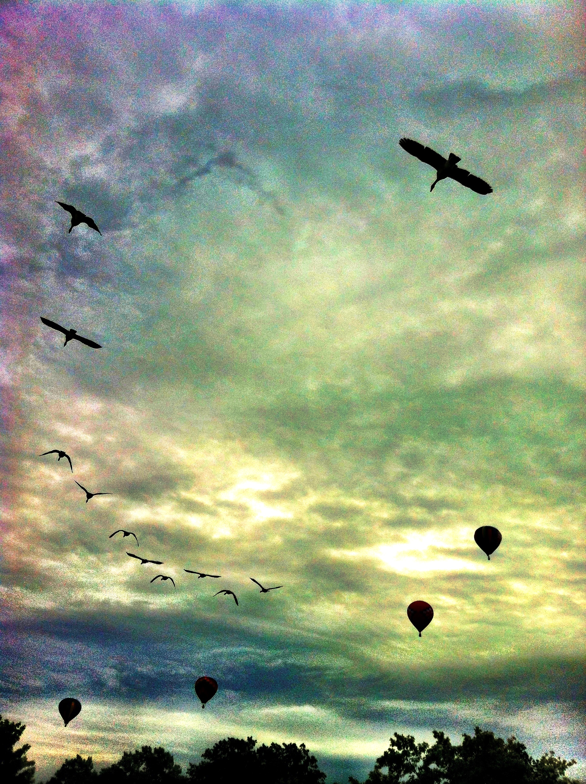 Day 15. ‘Journey’ Hot air balloons and Canada geese. I literally saw the geese fly over with the balloons, opened the camera on my phone and this is what I got. I added a couple of finishes in Camera +.