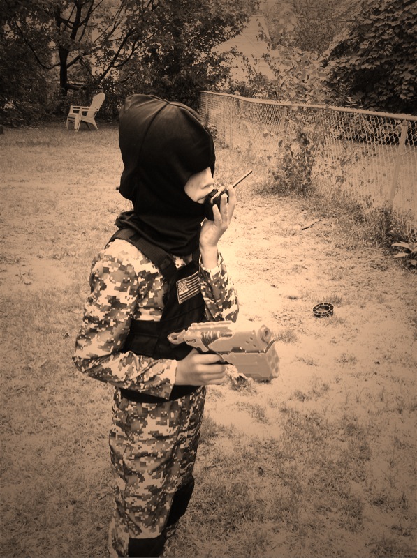 Day 1. ‘You now’ FMS theme. Untangling a GI Joe so Bodhi can throw him off the lawn!