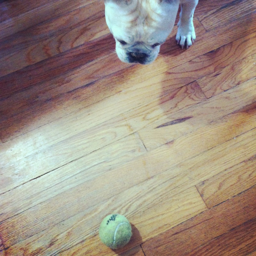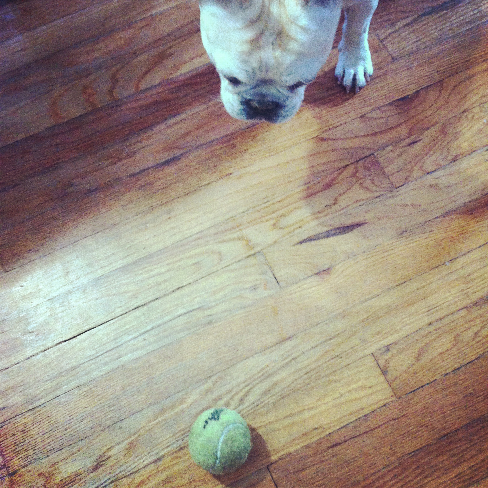 Day 26. ‘Near’ Pablo likes his tennis ball near, so that he can pounce on it!