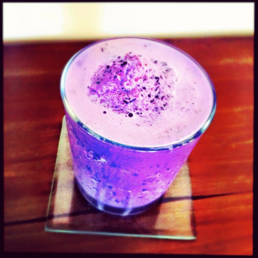 Day 28. ‘A Good Thing’ This blueberry smoothie was a very good thing! I whizzed frozen blueberries, milk, ice cream and honey together – ta da!