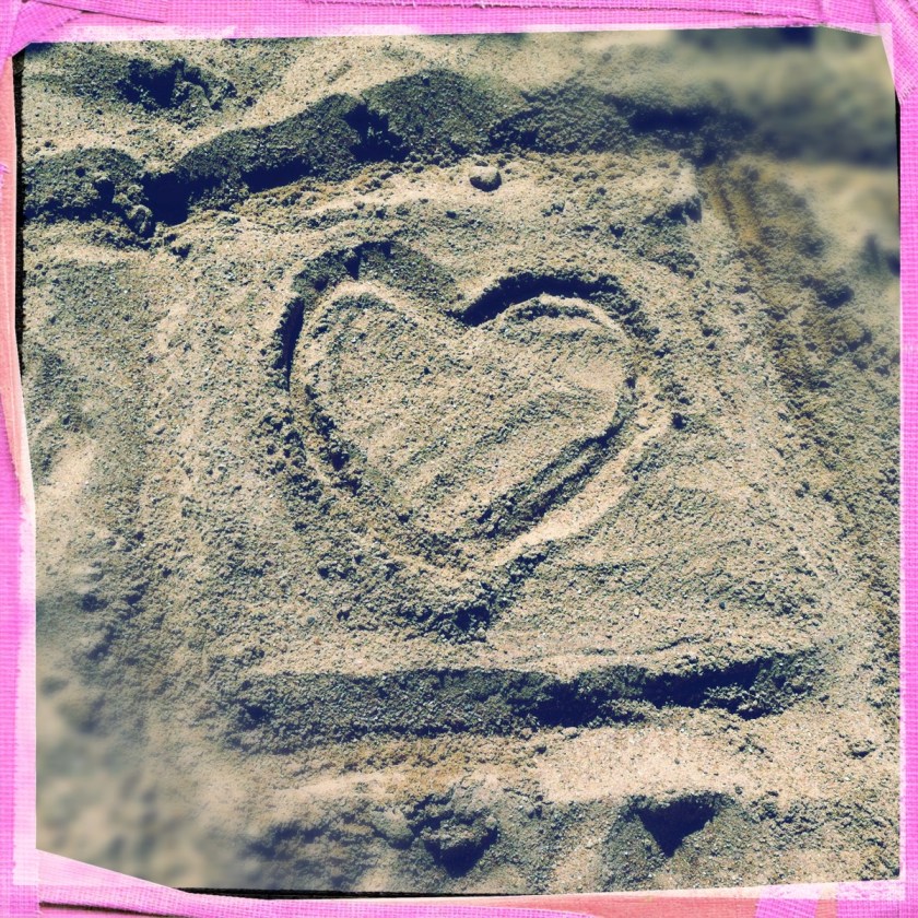 Day 29. ‘Frame’ Hipstamatic theme. I drew a heart in the sand and put a frame around it!