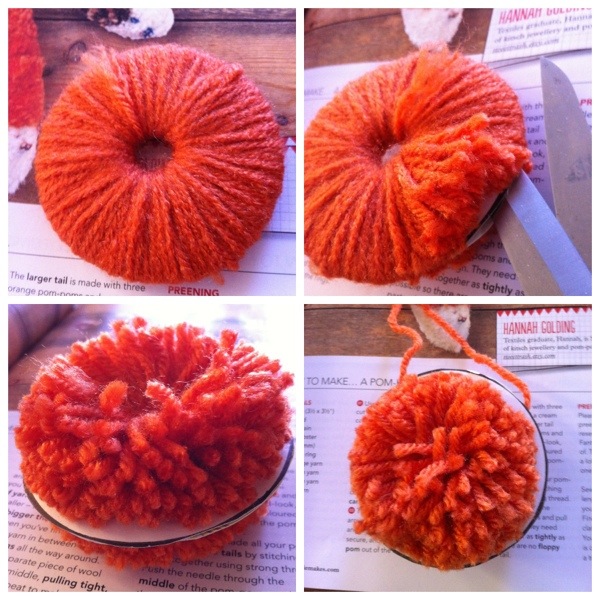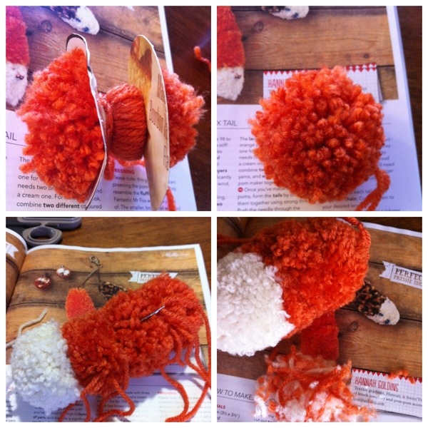 So, when I found an article in the new Mollie Makes by Hannah Golding with instructions on making a fox tail, or any fluffy animal tail, from pom poms, I was in.