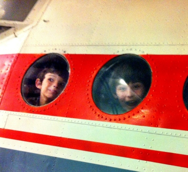 Day 8. Someone you love. My boys in a plane, at the Historic Aircraft Restoration Museum at Creve Coeur Airport, St Louis.