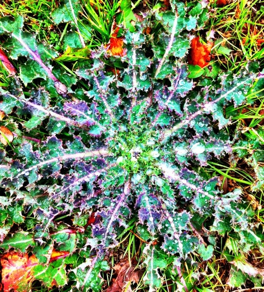 Day 9. Out and about. I spotted this rain drenched thistle on the way home from the dreaded Walmart!