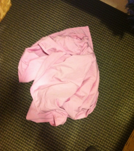 Day 17. On the floor.  Mammogram time, lovely pink ‘robe’.