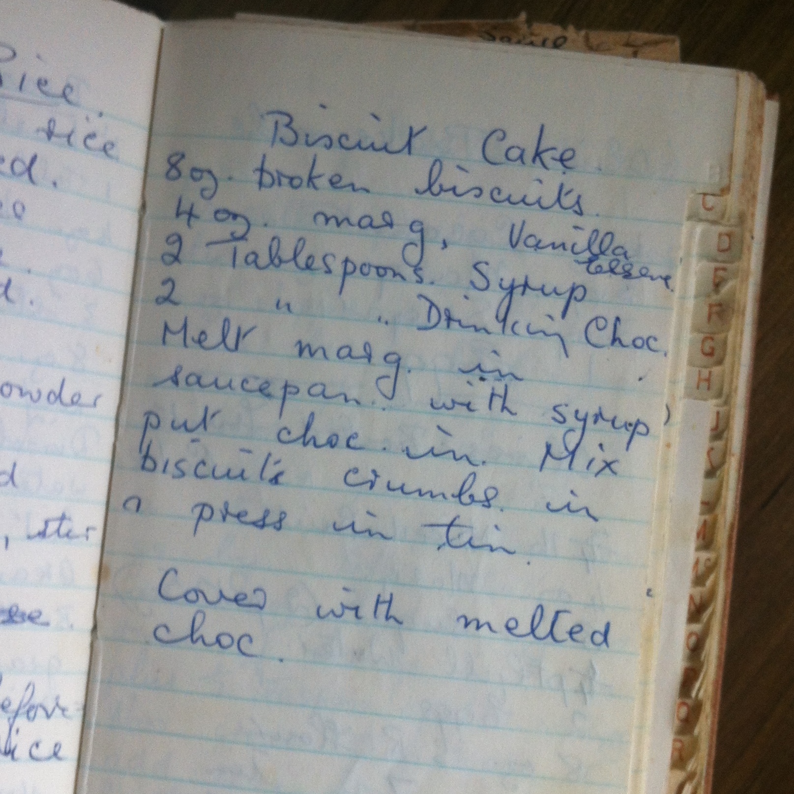 Appropriate then that I am also making and sharing Grandma’s Biscuit Cake recipe today. I have her handwritten recipe books and this cake is a treasure in itself. I hope we all keep recipe books or cards to pass on, I don’t think a ‘Pinterest’ board will be quite so impressive!