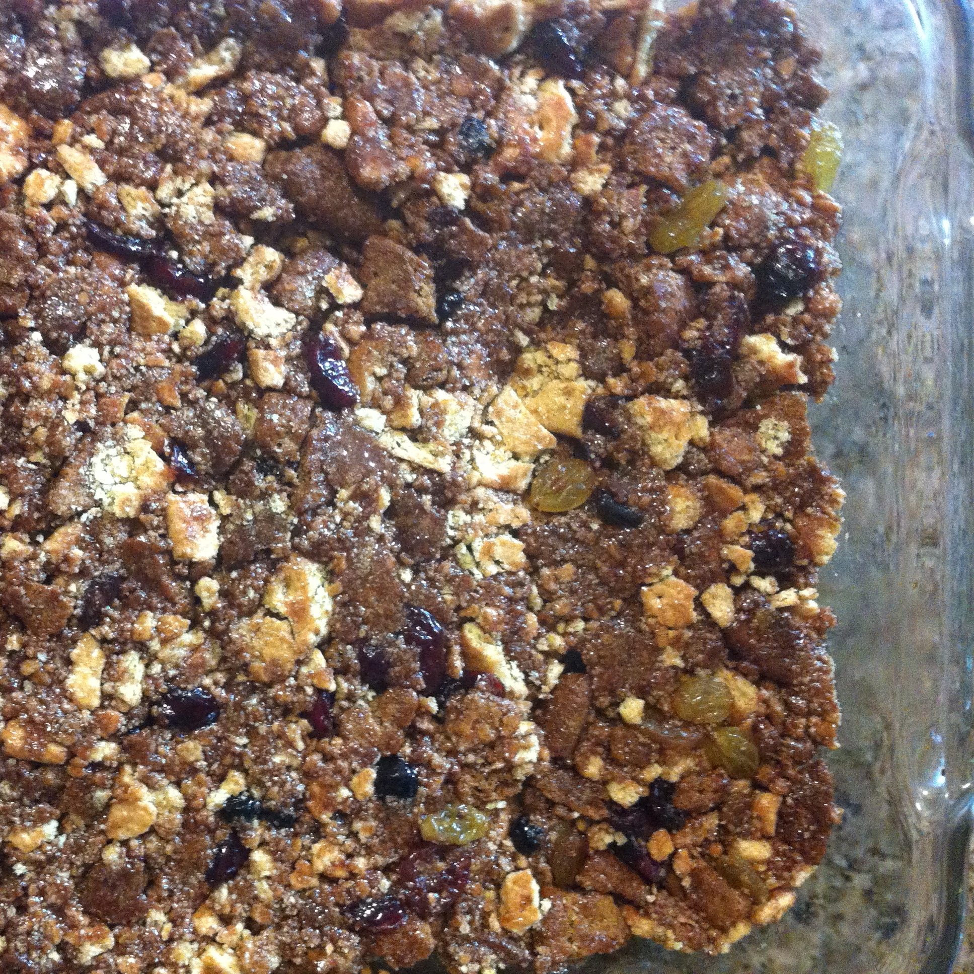 Mix the crushed biscuits into the butter and honey and press into a 8×8 square lined tin. As you can see, I didn’t line this pan and they were a bugger to get out, so I would recommend lining with parchment.