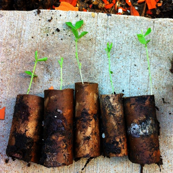 I put the seeds in toilet rolls to get them started.  The rolls disintegrate in the soil as the plants grow.