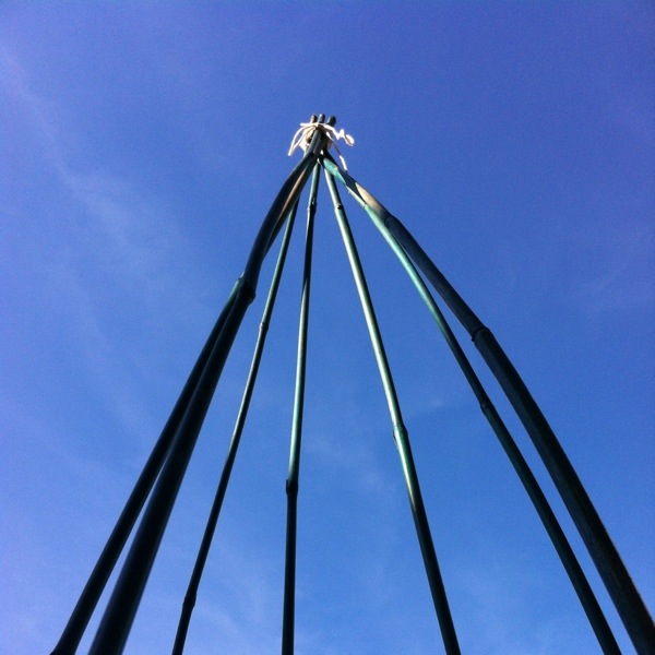 Sweet Pea’s eye view of the bamboo wigwam.