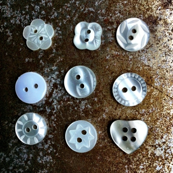 How can I use some of these teeny tiny buttons, maybe for eyes? If my little creature has eyes, well then it needs a heart.