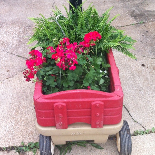 Flowers in the wagon.