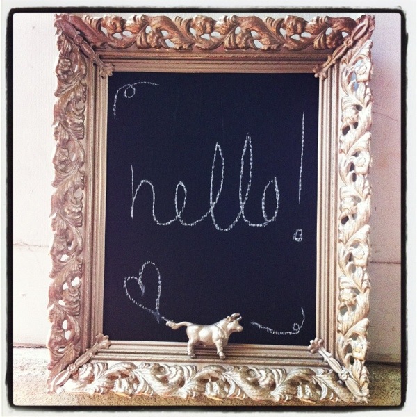 I also painted a sheet of cardboard with chalkboard paint so that I could use the frame as a snazzy chalkboard too.