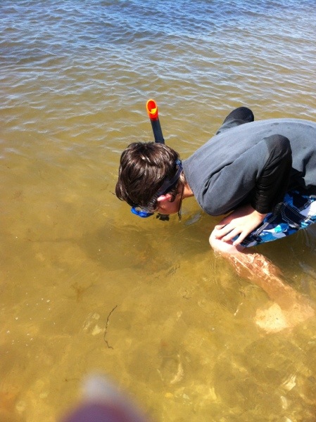 Braving the cold sea to check out a local Horseshoe crab friend!