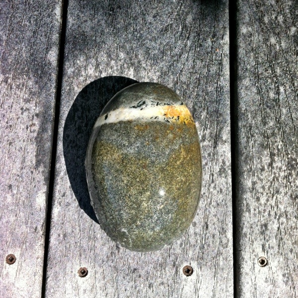 Bodhi was given a lucky stone yesterday which is a stone from the beach with a band of quartz all the way through it making a white line.