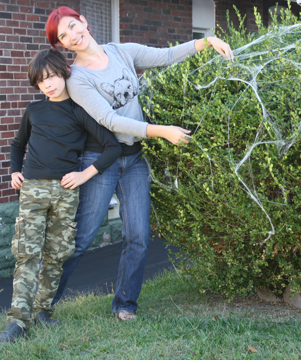 We finally caved and bought spider webbing this year as well. It’s covering our front railings, and you’re right, it’s pretty effective. Anyway, LOVE YOUR RED HAIR!