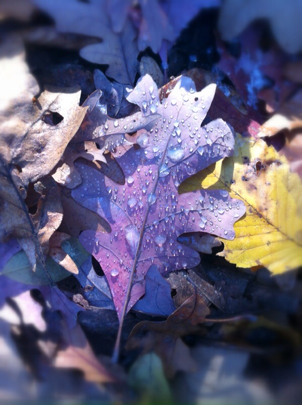 20131118-093620.jpg 12/365.  Beyond frost this morning, straight on to icy.  I caught the ice on the fallen leaves with my iPhone using Camera+.  I messed about with it in Snapseed on the iPad.