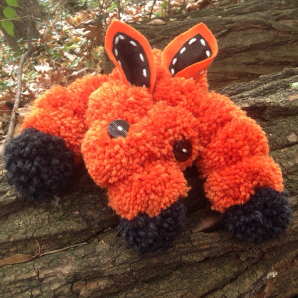 20131118-094741.jpg 15/365.  The finished pom pom fox hiding out in the woods.