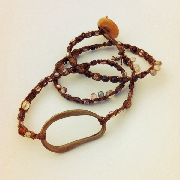 I love this wrap with the ring incorporated although my intention was for the wrap to be long enough to wrap the wrist five times instead of three. Need to recalculate the amount of starting thread!  Of course this is the reason I make things, test them, adjust and try again.