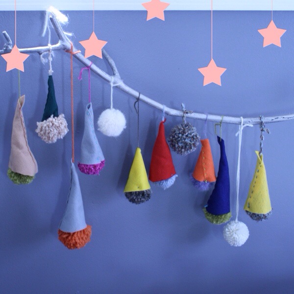 As you know, I love a pom pom or three. I am using pom poms as my advent calendar, making a pom pom a day and hanging it on. This idea soon turned into pom pom elves!