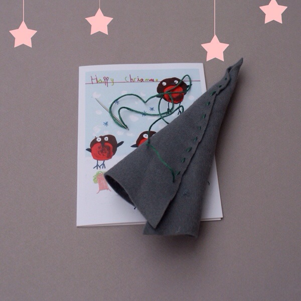 With some pretty embroidery thread, sew up the hat from the top down, you might need to pin it together before you sew. Finish sewing just before the bottom edge, don’t finish off here, you will need the thread to sew the hat to the pom pom.