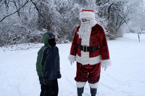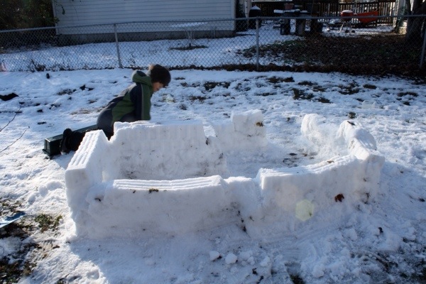 I found an icy heart, clear reflections, made mince pies, it snowed, Mr.Y chatted to Santa and we built a snow fort.