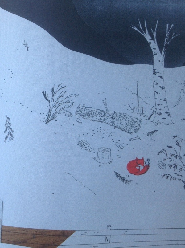 From ‘The Bear’s Song’ by Benjamin Chaud. Look at all the detail here, all of the illustrations in the book are like this. Makes me want to find things! In this picture I like the lady exercising in the window.