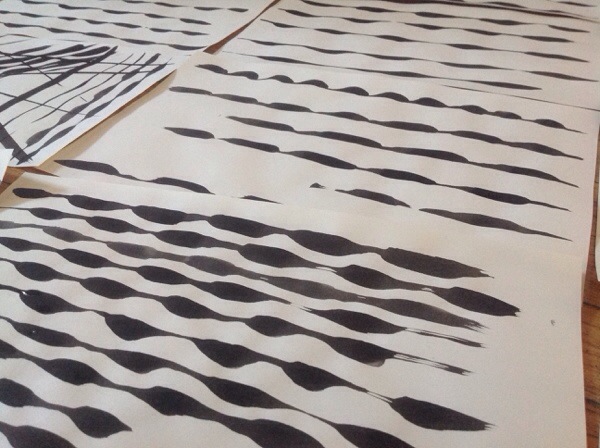 In the meantime, here are the photos from last week. I have been doing a ‘Brush Script’ class online with Studio Calico and Kal Barteski and I have been practicing and practicing as you can see by the full floor!