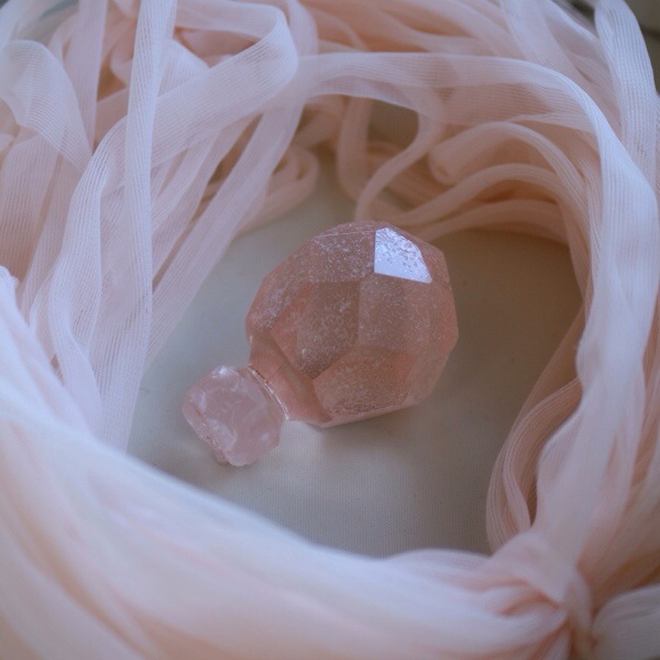 Wondering what I should do with the treasures I found at the antiques mall? I bought a perfume bottle stopper and some chiffon ribbon which by coincidence is the same colour almost exactly as the stopper, so pretty.