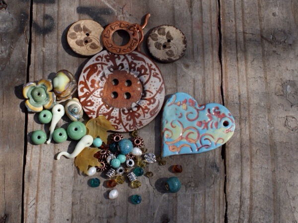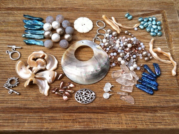 This last photo is the soup I sent to Cassi, a mix of shell, freshwater pearls, stick pears, Botswana agate and metal charms amongst Czech glass, quartz crystal and glass pearls. I love this summery mix and I can’t wait to see what Cassi creates with it. I know it is in good hands!