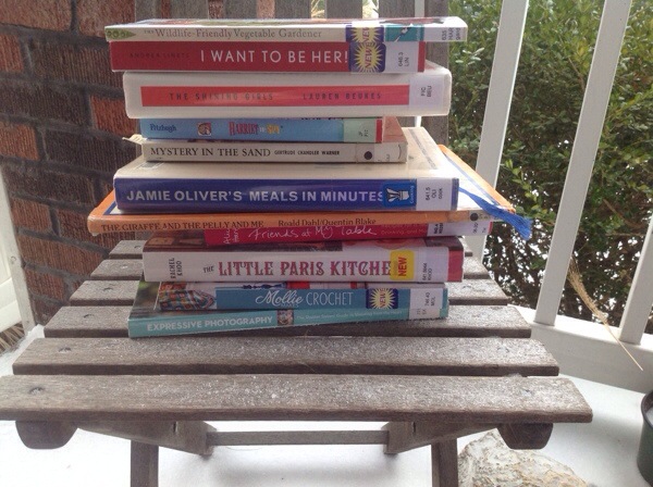 20140303-144219.jpg 2. Something borrowed.  Lots of library books.