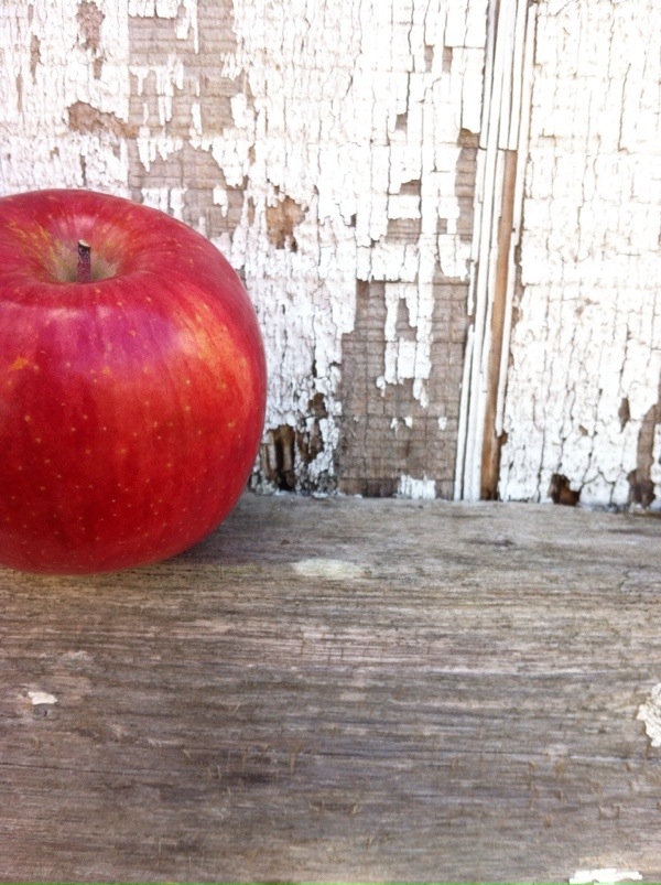 I love these pictures, especially the apple next to the rough wood. By the way, you have excellent hair!