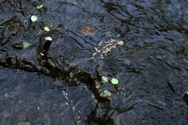 As I turned to walk back along the edge of the water, a flower seedhead floated down towards me and it was the prettiest thing gently gliding along in the water. It soon came to rest next to a rock letting me get a photo before it moved on down the creek.