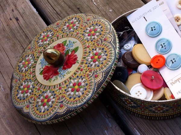 3. and 4. A tin and buttons from the sale.