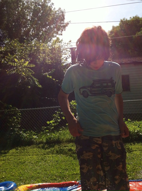 Last week was hot hot and more hot with a couple of storms thrown in.  I had one sick kid for a few days and we managed to Slip n Slide lots.  I dug up some of the garlic and it is looking good, there are some teeny tiny tomatoes growing too.