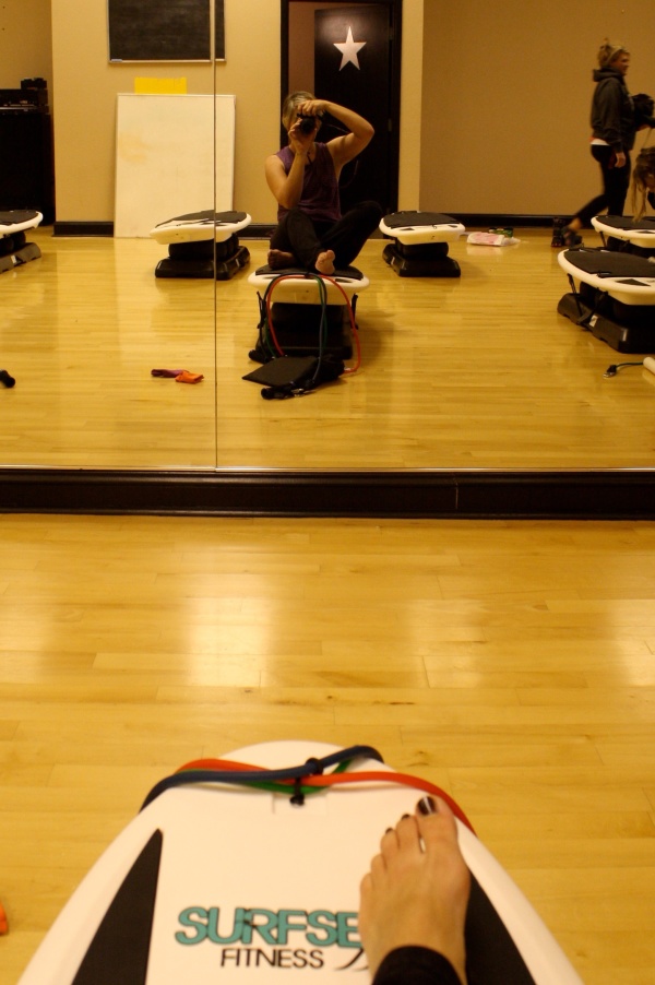 Surfset is a brand new workout in my world and I couldn’t wait to try it.  Look, you just sit on a wobbly board and take photos in the mirror.  Easy peasy!  Not so much with the easy peasy, nor the camera for that matter!  This is an all over workout and is so much fun, you forget that your arms/core/legs are starting to ache!  I took this photo post class and here I am with legs as wobbly as the board that made them that way.
