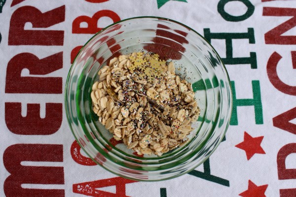 Here is the recipe – oats, glitter, shiny shapes.  Mix well and apply to all surfaces which will help guide the reindeer in – driveway, garden path, outside your door, on the roof, in fact anywhere you decide to sprinkle.