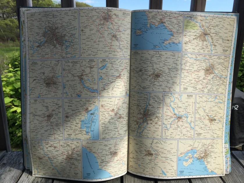 Inside the vintage atlas I picked up from the library’s free shelf. The map pages are nice thick paper and the index pages are thinner.