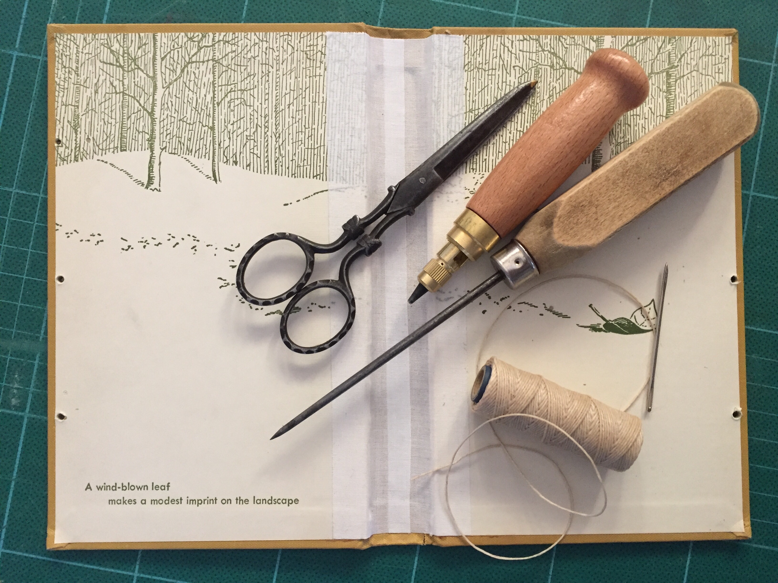 The paper inside the book is a mix of hot press watercolour paper, brown kraft paper and a couple of pages from a vintage book of nature.