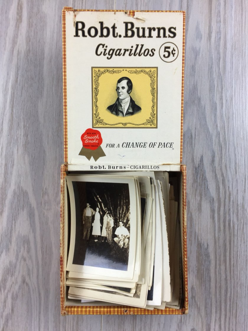 This cigarillo box contains photos from 1914-1935. Most are written on the back with names and locations.