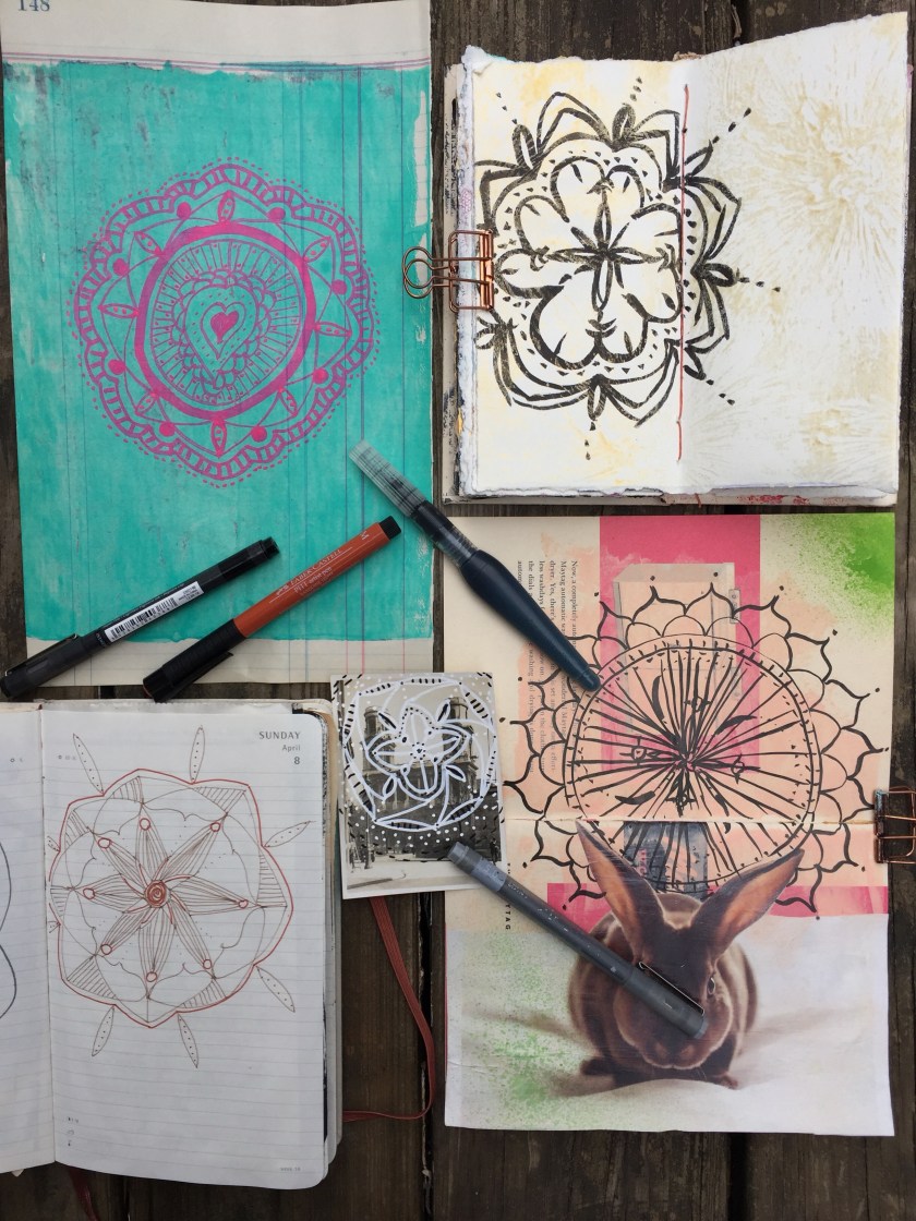 I think one of the main reasons I am liking it so much this year is that I haven’t restricted myself to a sketchbook or one paper type to make them on. In fact I am sure at some point I will make a mandala which doesn’t even involve paper.