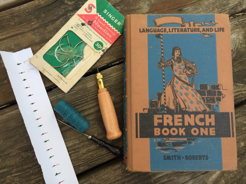 To accompany my new sketching practice I made a sketchbook using a vintage French text book cover. I am not sure where this gem came from but I am pretty certain it was an estate sale somewhere here in St Louis.