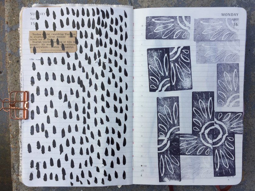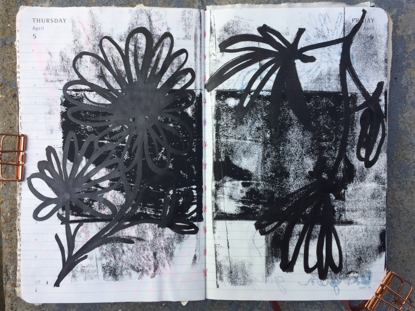 Lots of flowers this past month as I also participated in Creative Bug‘s daily flower challenge with Pam Garrison. The flowers sit alongside vintage photos, vague figure sketching and a spot of collage.