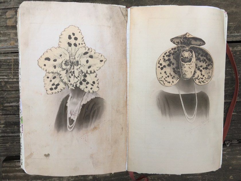 I love to draw and sketch flowers and botanical everything anyway so this was obviously the class for me. So far I have been making botanical bits and bobs in my art journal, my new sketchbook and some vintage ledger paper.