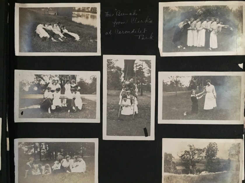 I love to see the names, the date and often a little description of the image. Just look at the poses and the joy in the page of photos from 1916 shown above!