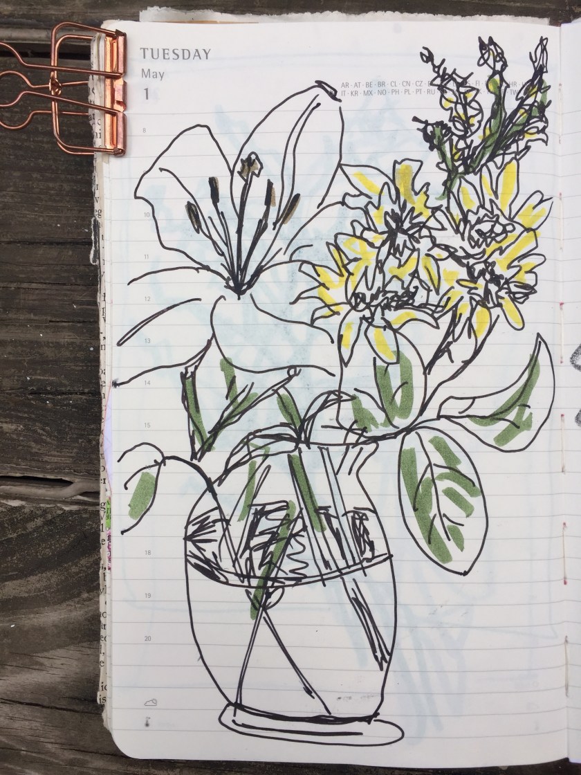 May was a very floral month! I sketched, painted and collaged all the botanicals along with the Botanicals in Art Journaling class at Get Messy Art Journaling. I didn’t realize just how flower mad I had gone! No complaints here.